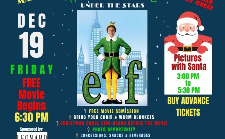 Enjoy a Free Holiday Movie Night Under the Stars as we screen the family favorite “ELF” on the Front Lawn. Bring your family, friends, cozy blankets, and low-back chairs for a night of holiday cheer and community fun. Dress in holiday attire.